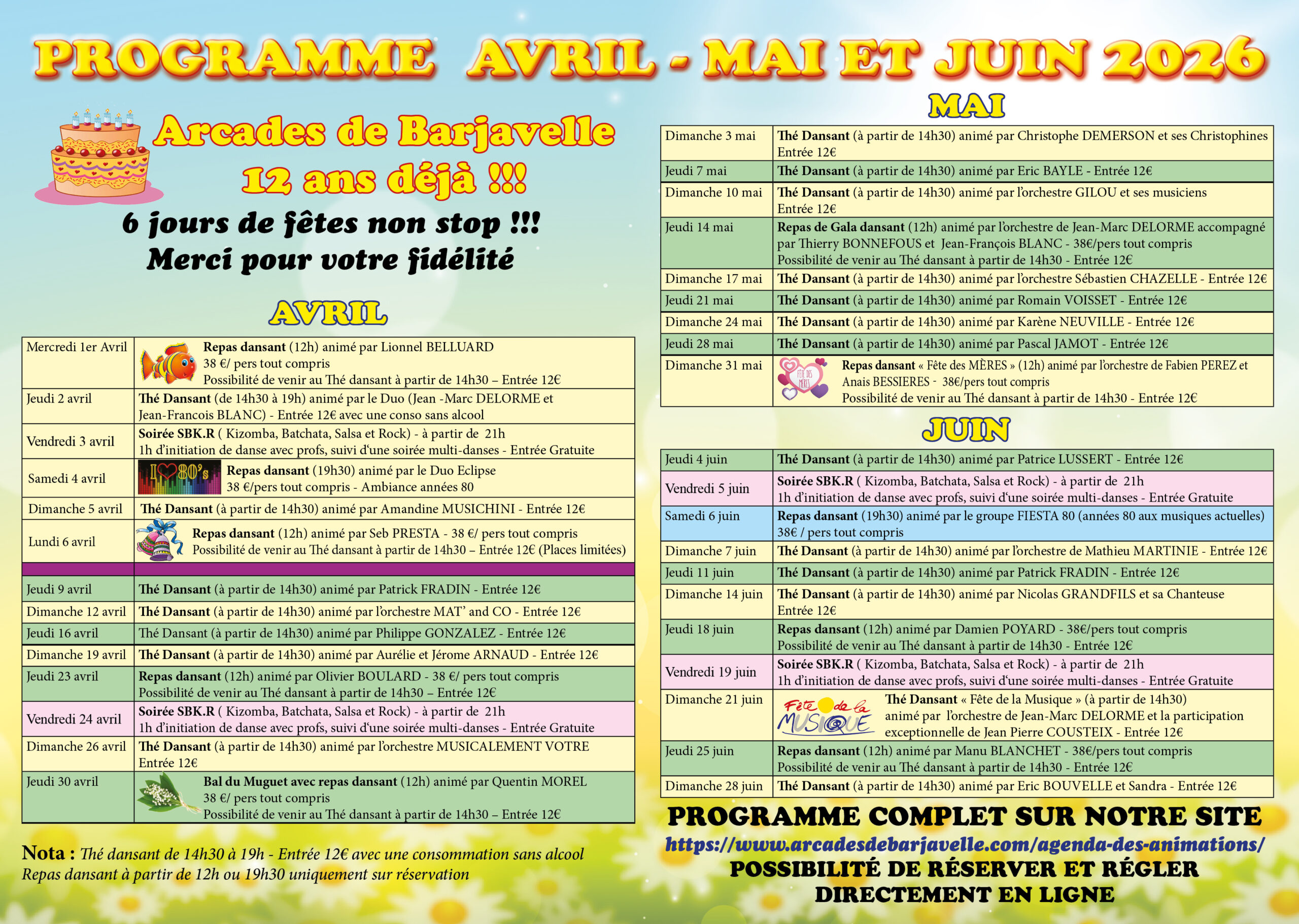 Jeudi : Thé Dansant avec Musicien de 14h30 à 19h00 – Entrée 12€ avec une conso sans alcool comprise
