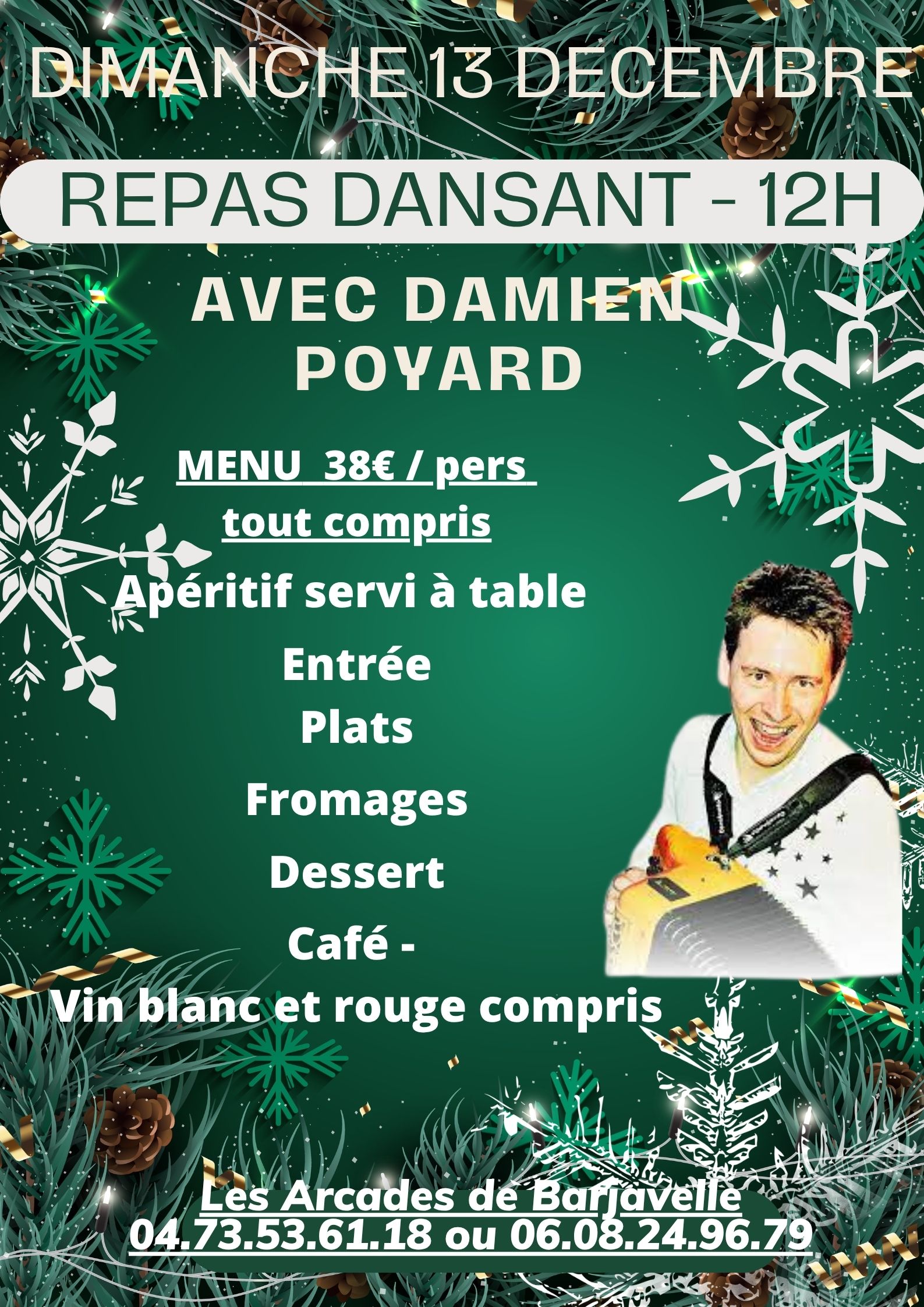 DIMANCHE 13 DECEMBRE – REPAS DANSANT AVEC DAMIEN POYARD