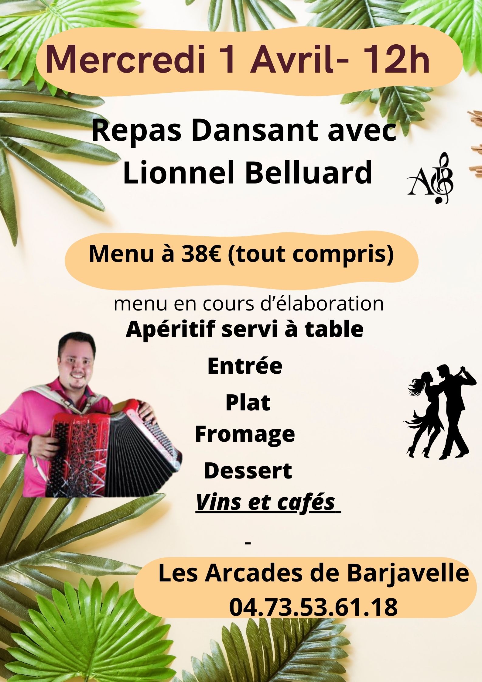 MERCREDI 1 AVRIL – REPAS DANSANT AVEC LIONNEL BELLUARD