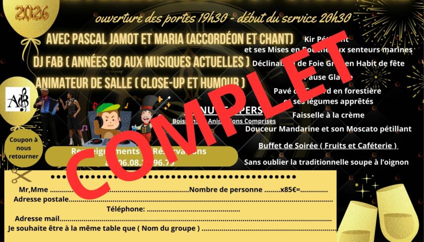 MERCREDI 31 DECEMBRE – REVEILLON DE LA ST SYLVESTRE – COMPLET