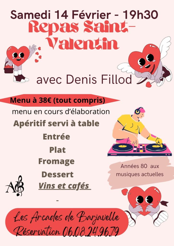 SAMEDI 14 FEVRIER – REPAS DANSANT DE LA SAINT VALENTIN AVEC DENIS FILLOD