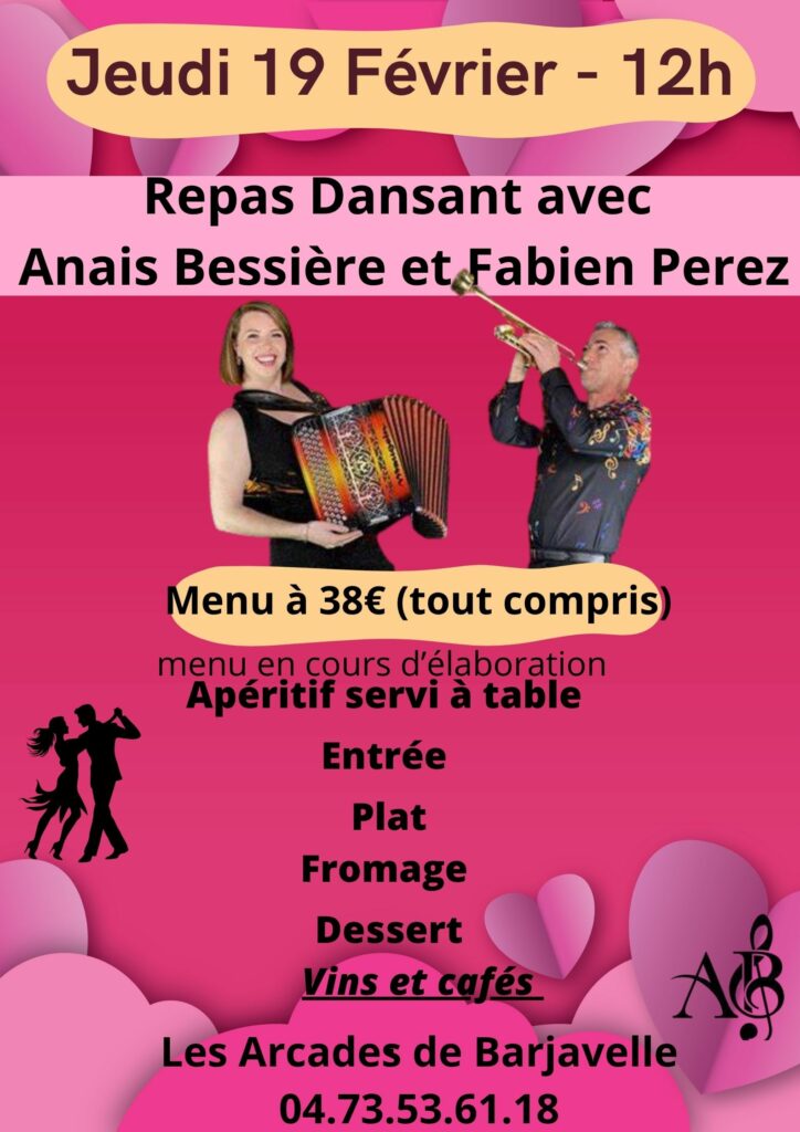 JEUDI 19 FEVRIER – REPAS DANSANT AVEC ANAIS BESSIERES ET FABIEN PEREZ
