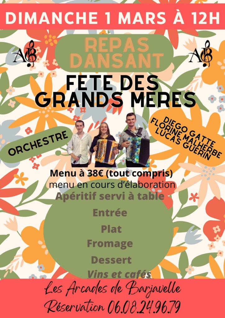 DIMANCHE 1 MARS – REPAS DANSANT "FETES DES GRANDS MERES " AVEC L’ORCHESTRE DE DIEGO GATTE